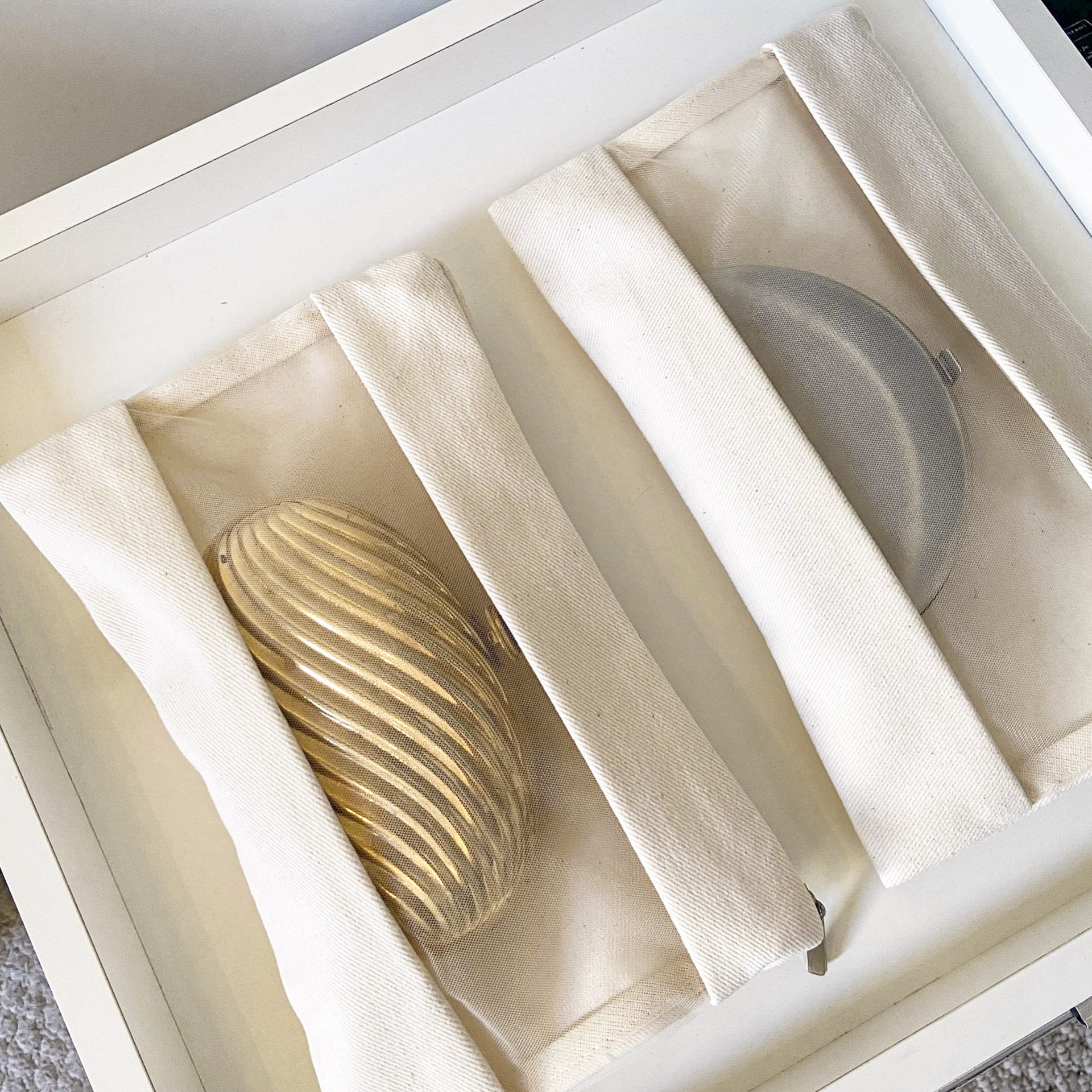 Nossas capas tem fechamento em ziper, com visor em organza permitindo visualizar a bolsa guardada.