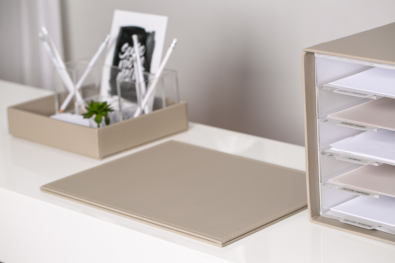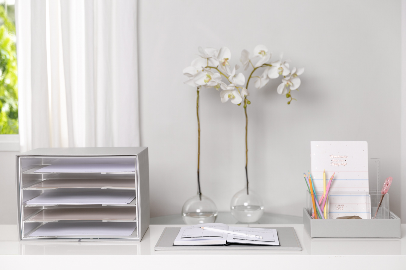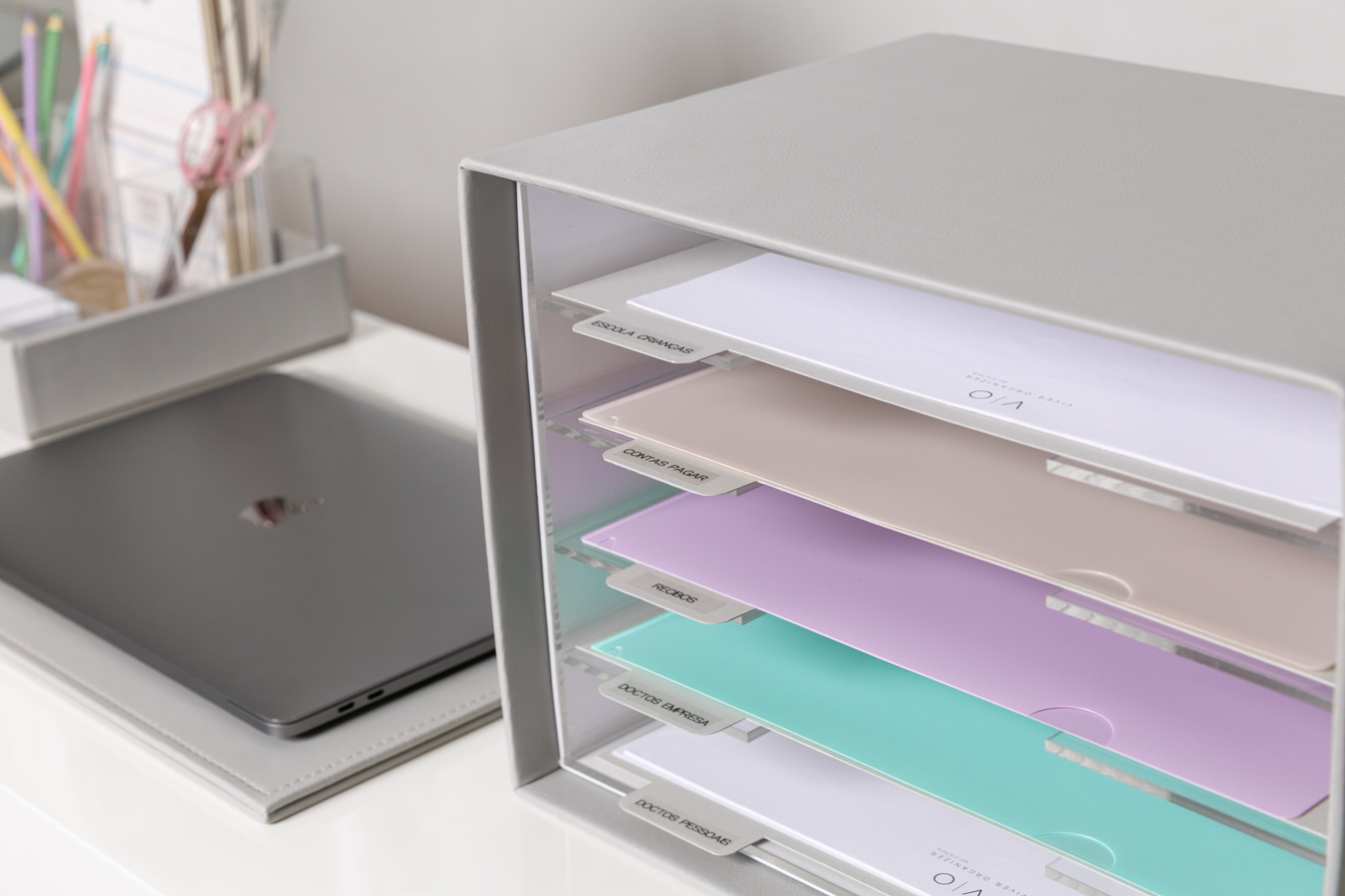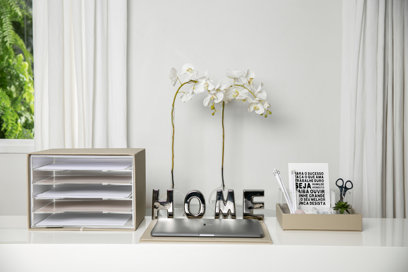 Para isso, tenha sempre o cuidado de deixar em sua mesa apenas o que for essencial para o seu dia a dia. Os demais itens podem ser guardados em algum lugar acessível para quando for preciso utilizá-los.